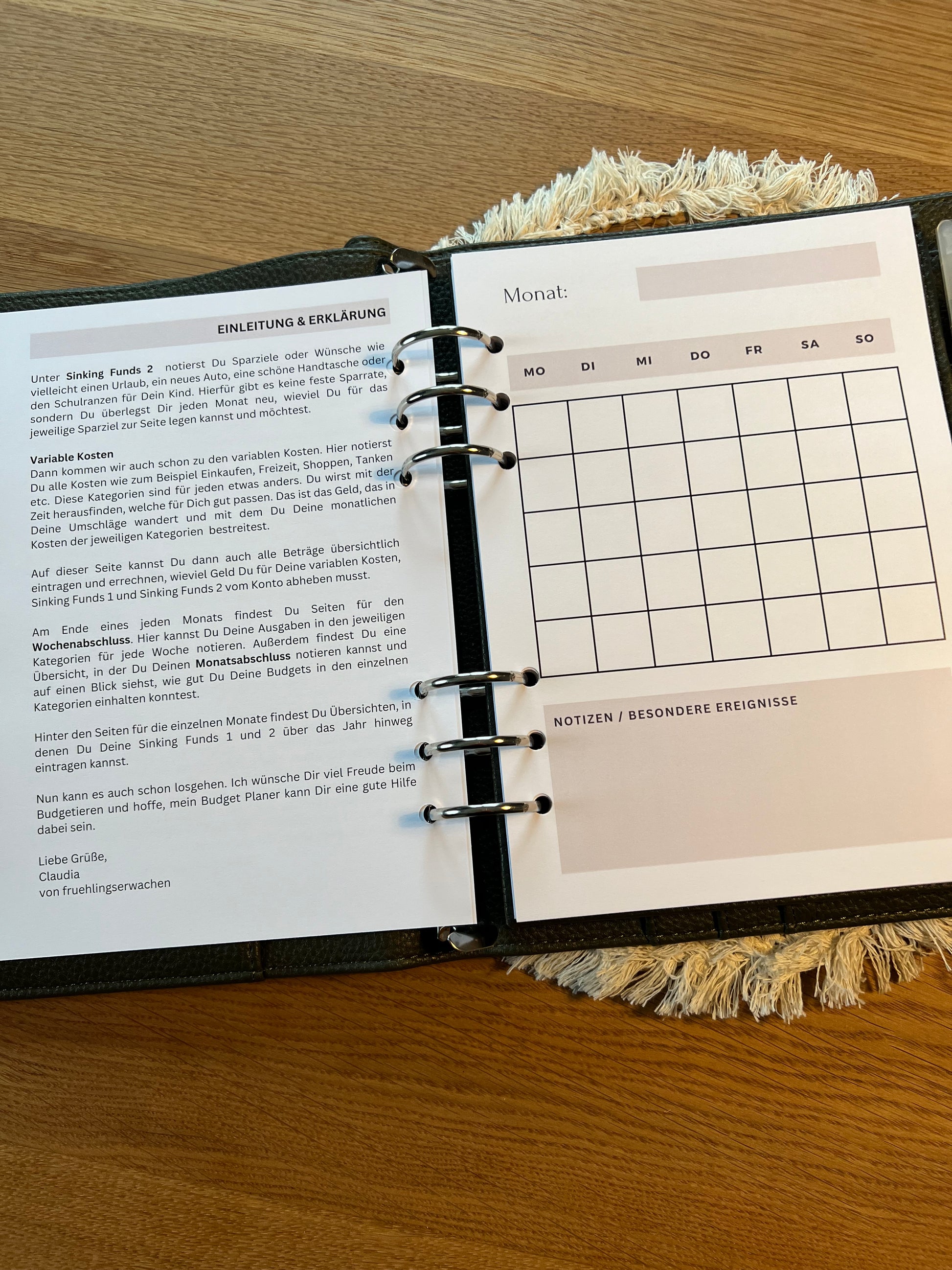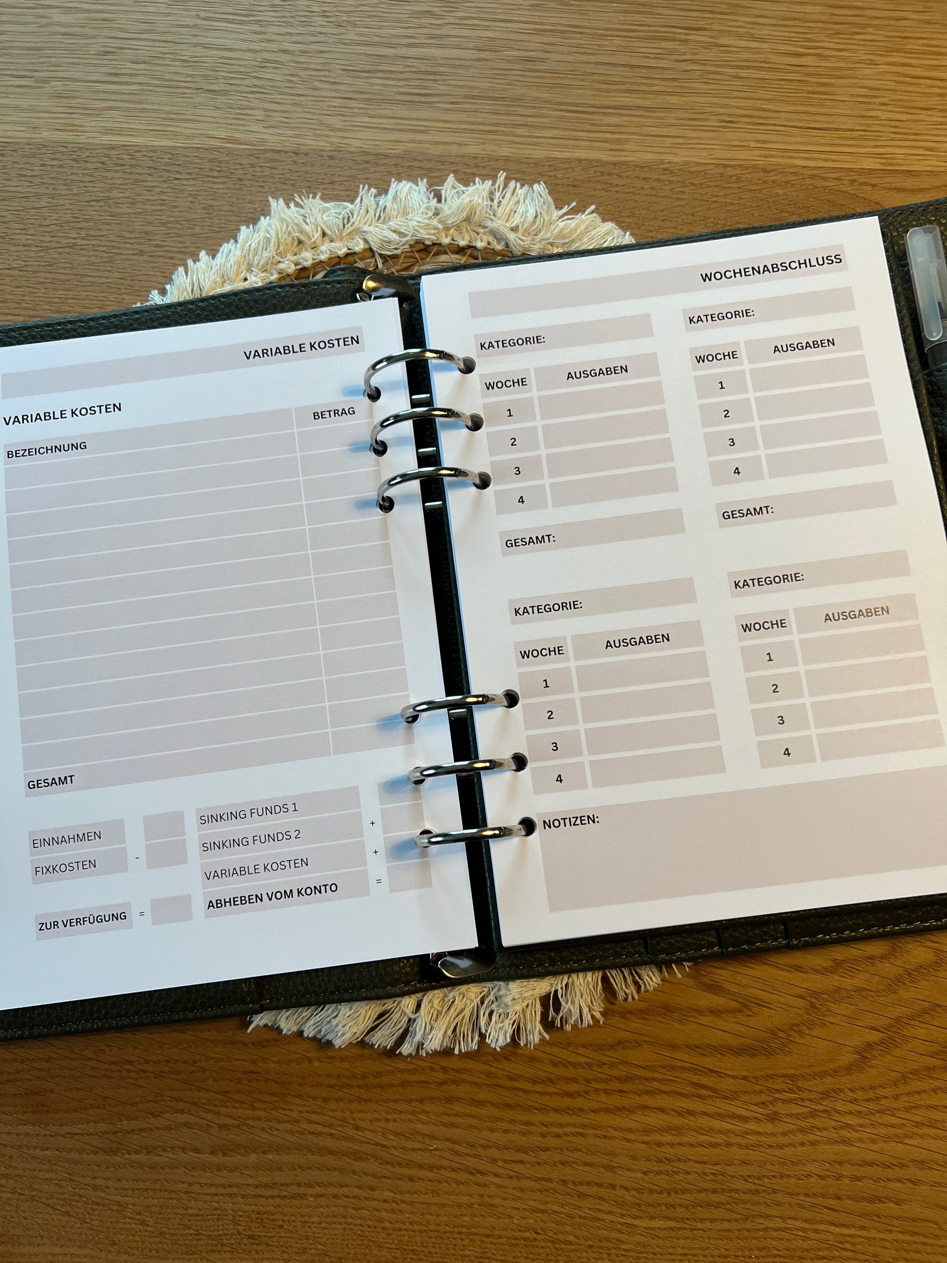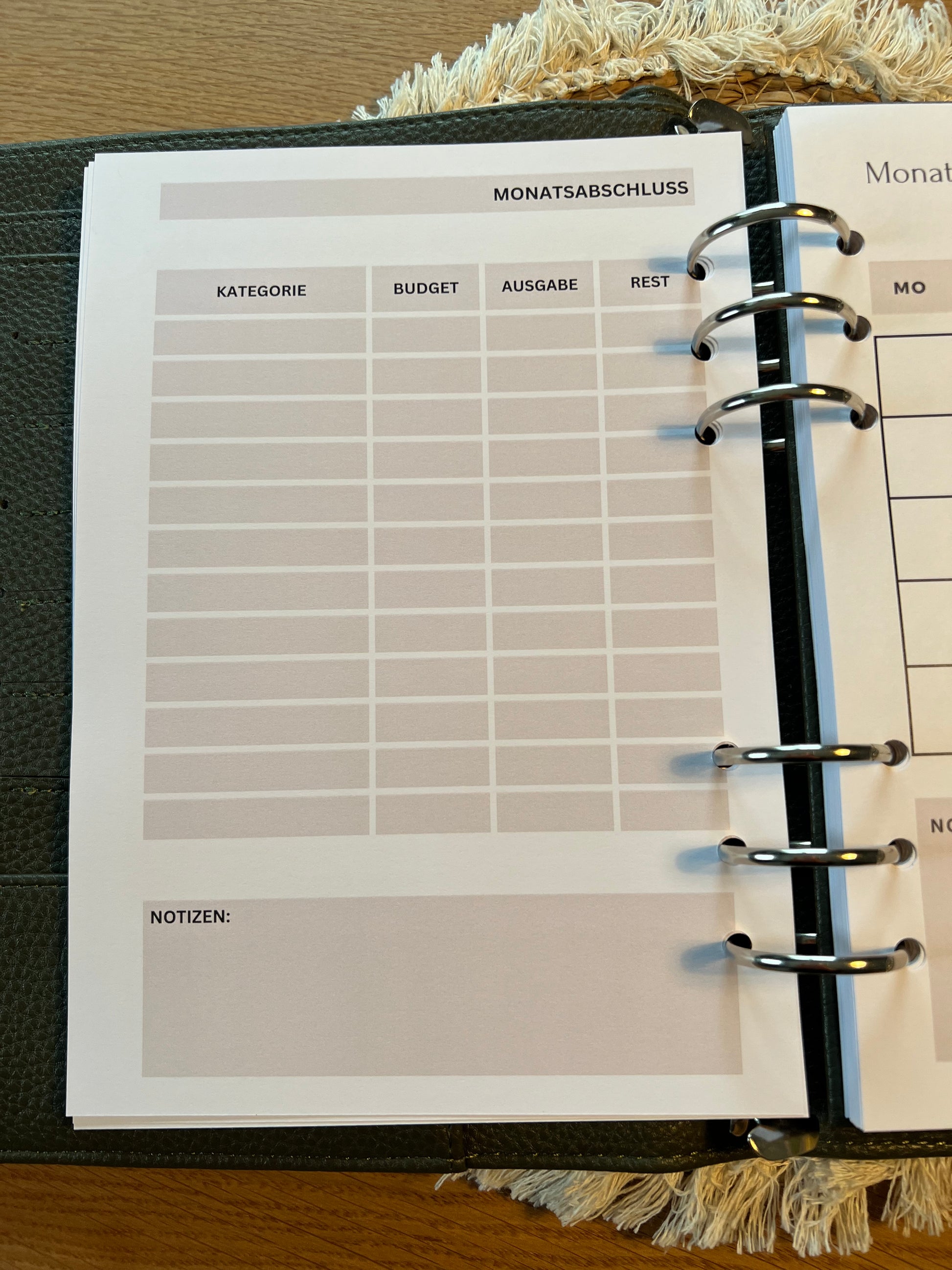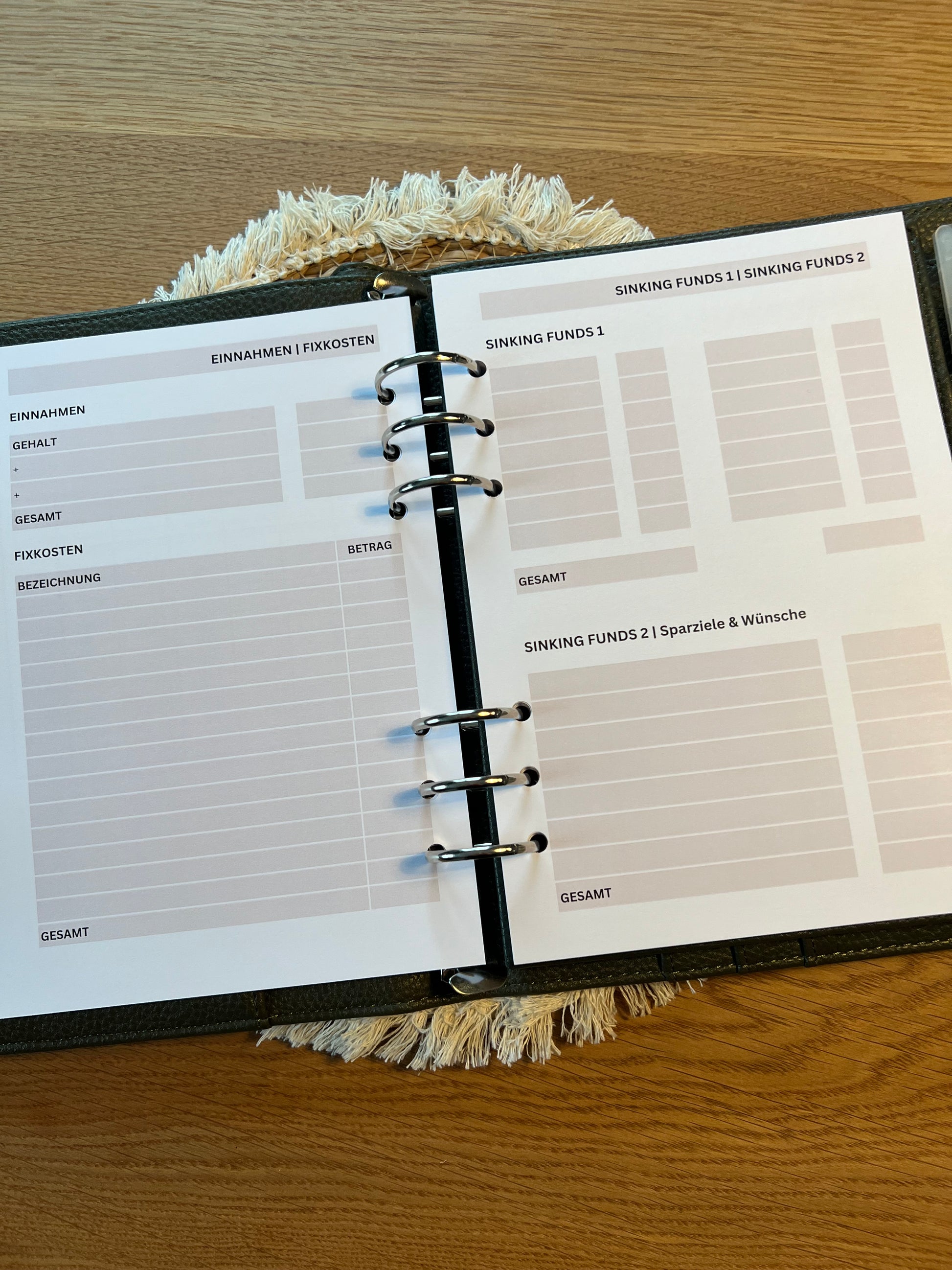 Budget Planer Einlagen mit 6-fach-Lochung perfekt für den A5-Binder: Mit unserem Budget Planer kannst Du Dein Budget planen und tracken und so perfekt vorbereitet in den neuen Monat starten.