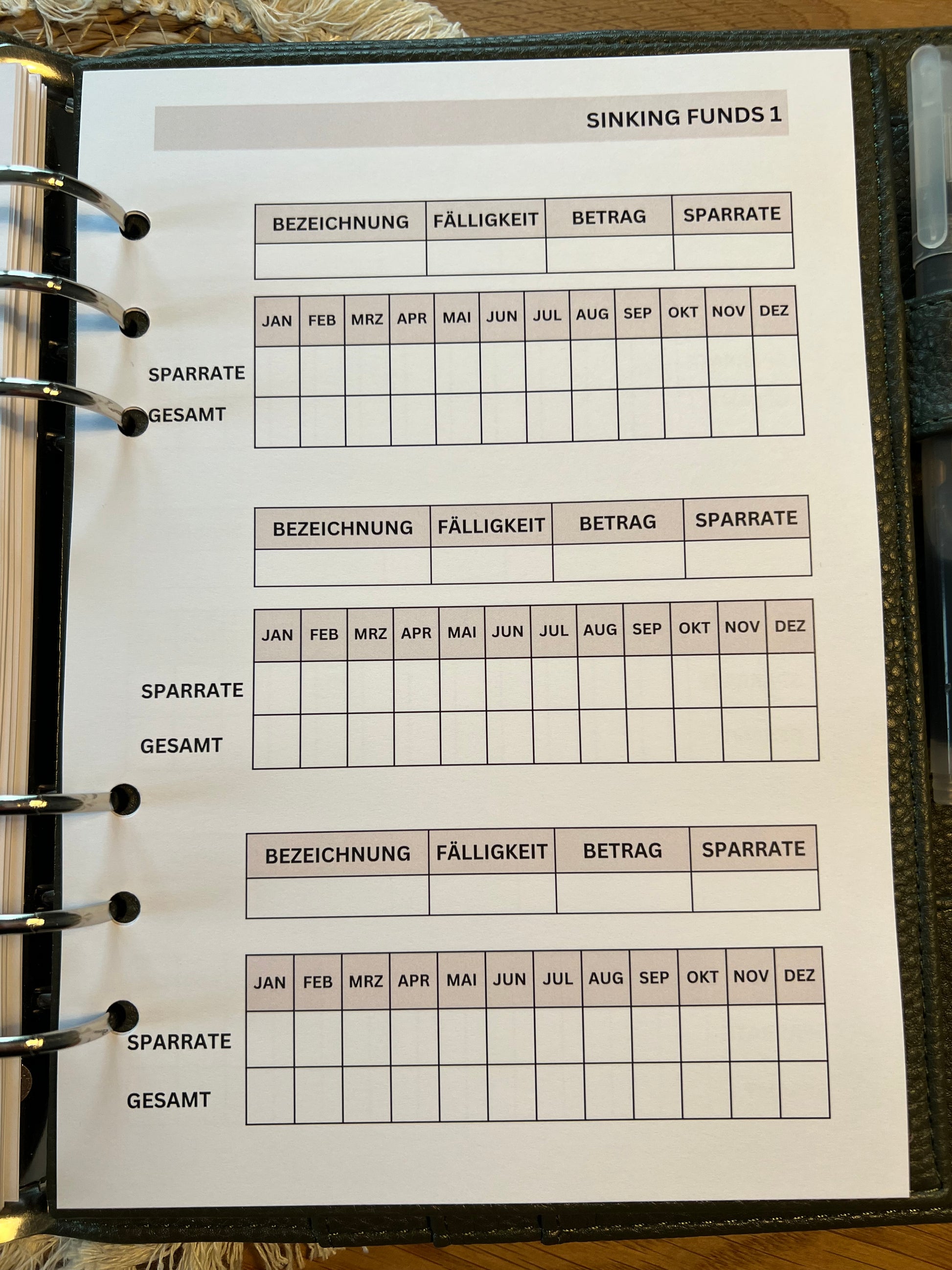 Tabellen zum Eintragen Deiner Sinking Funds 1 & 2