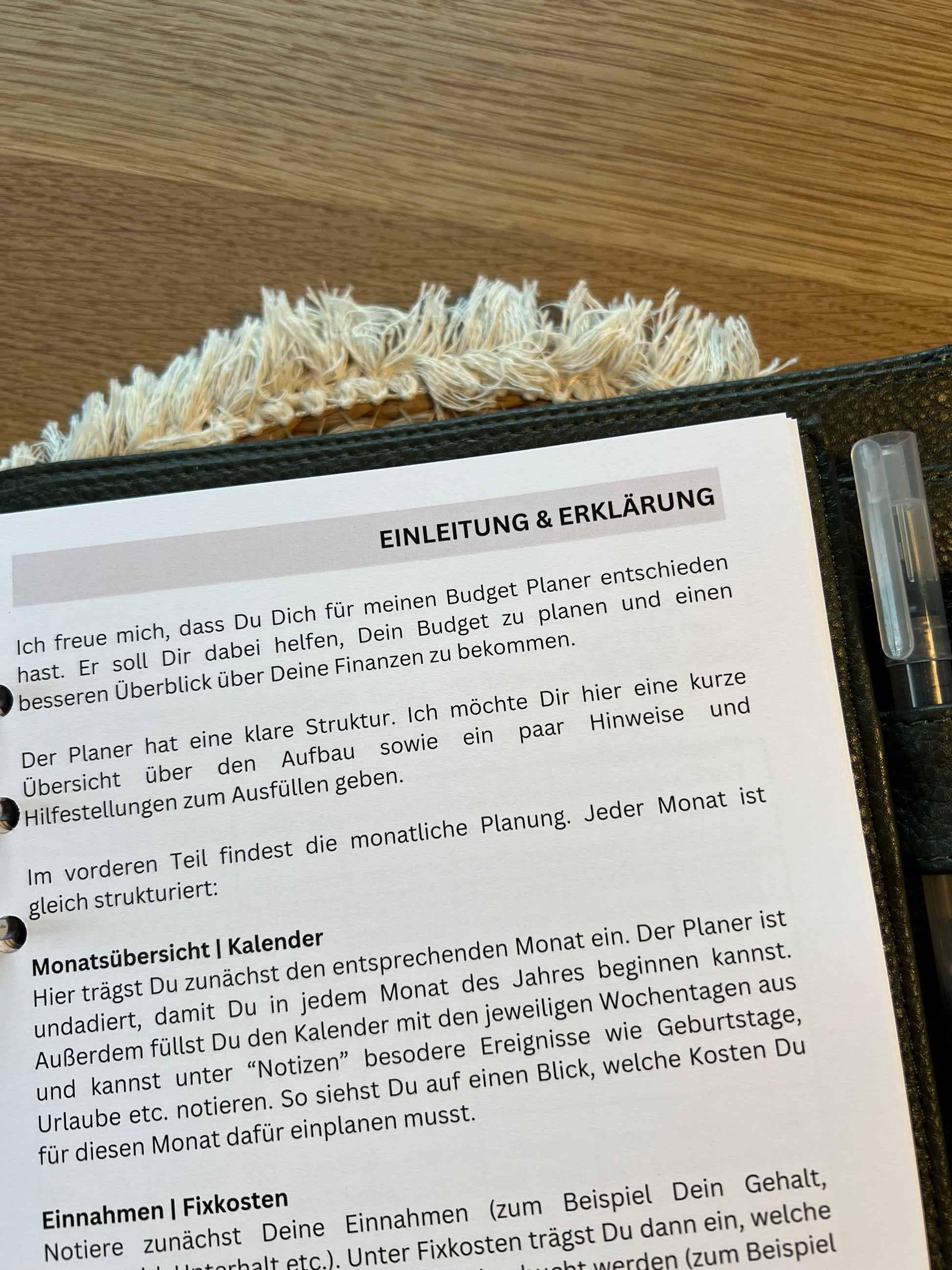 Der Budgetplaner besteht aus 108 Seiten im A5 Format. Er ist gedruckt auf hochwertigem Papier.
