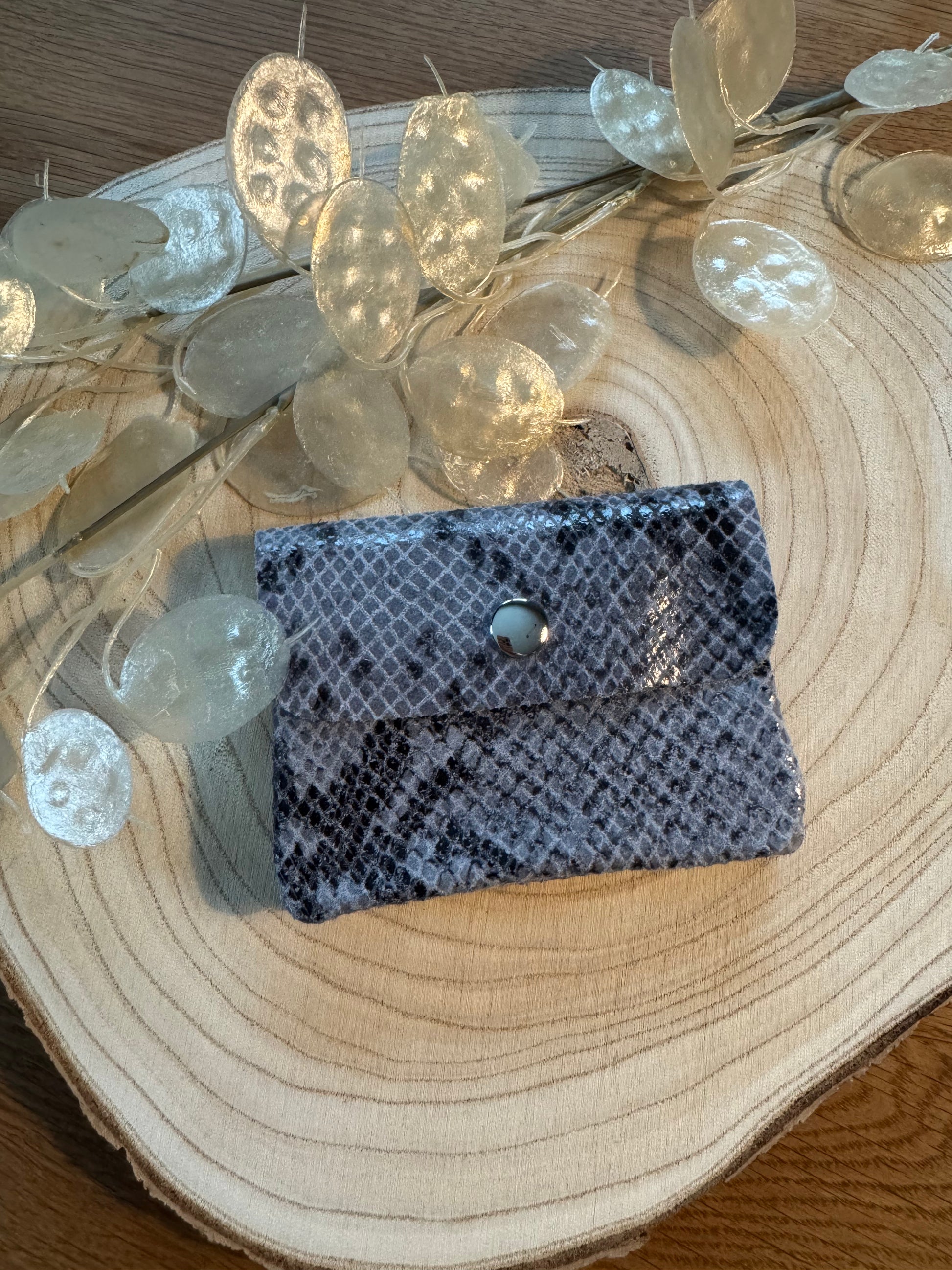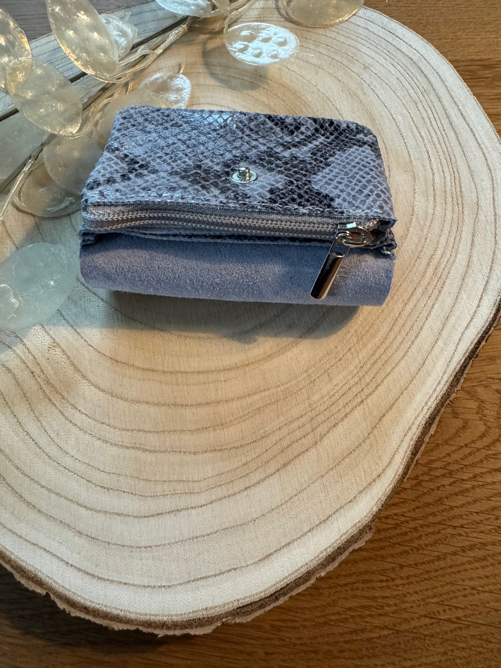 Süße kleine Leder-Geldbörse mit Druckknopf. Innen ist sie mit einem Kleingeldfach ausgestattet, das mit einem Reißverschluss verschlossen ist, sowie zwei weiteren Fächern.