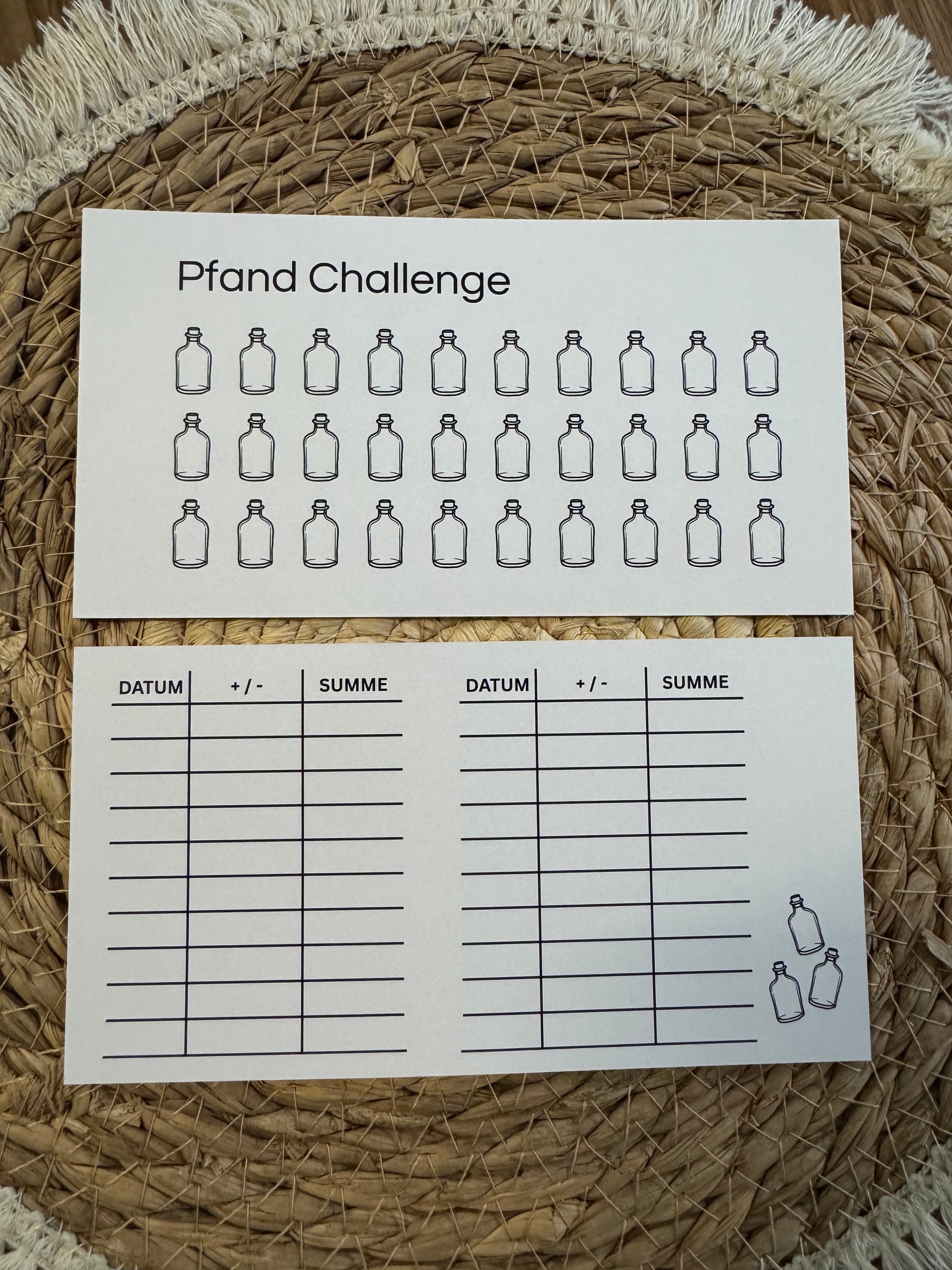 Die Pfand-Challenge passt perfekt in die Zippertaschen Deines A6 Binders.