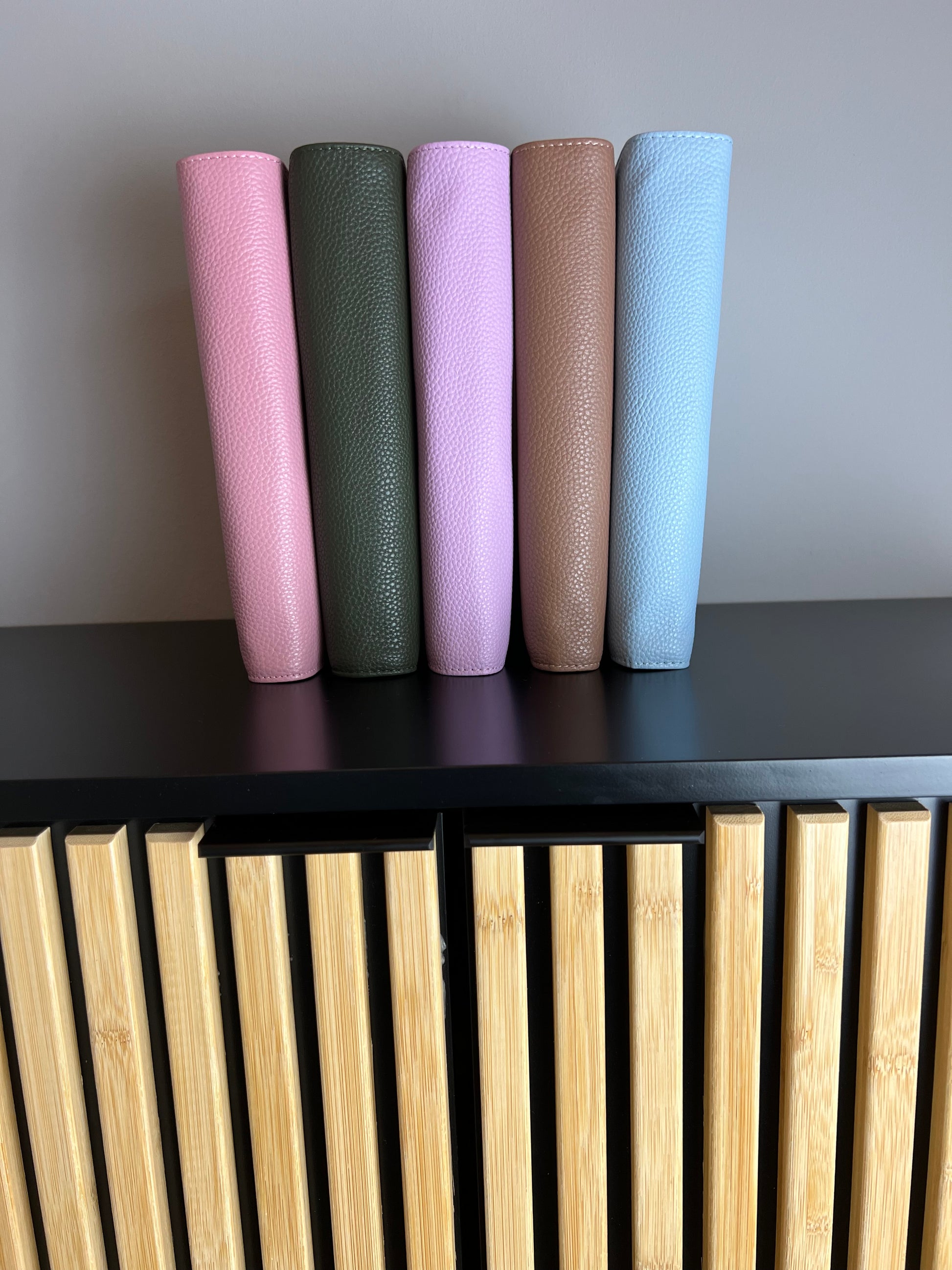 Die Premium Binder in der Größe A5 haben neben einem flyleaf diverse Kartenfächer, ein großes Fach hinten, einen Stifthalter sowie ein Reißverschlussfach. Sie werden verschlossen mit einer Kombi aus Druckknopf und Magnet, so dass sie sehr gut verschließen, auch wenn der Inhalt des Binders etwas dicker ist.